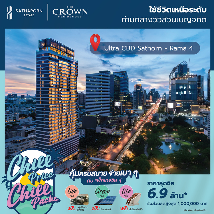 The height of luxury and sophistication, The Crown Residences offers paramount parkside living at the center of one of the world’s most exciting cities. Take in sweeping Bangkok cityscapes along with energizing park view from deluxe, Starry Night Rooftop Facilities perched on top of the building’sgleaming crown structure, where you will find a Sparkling Star CeilingandStarr Night Infinity Pool.